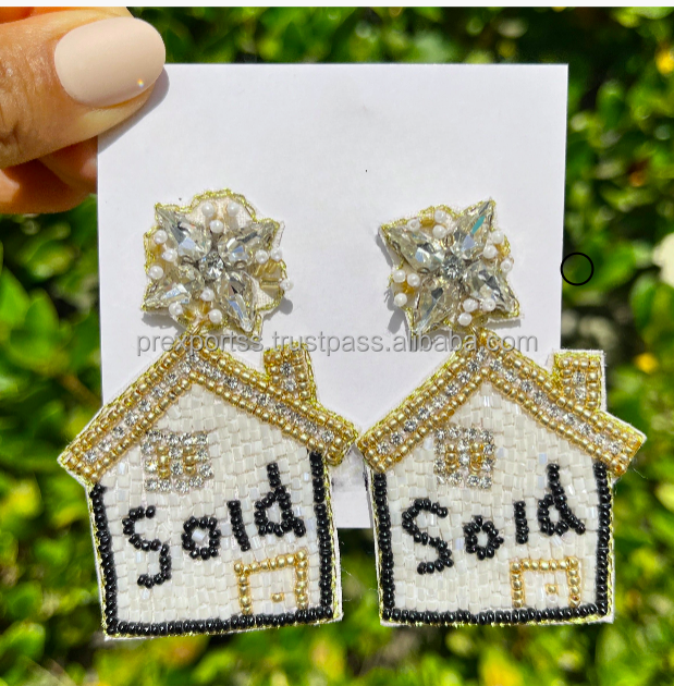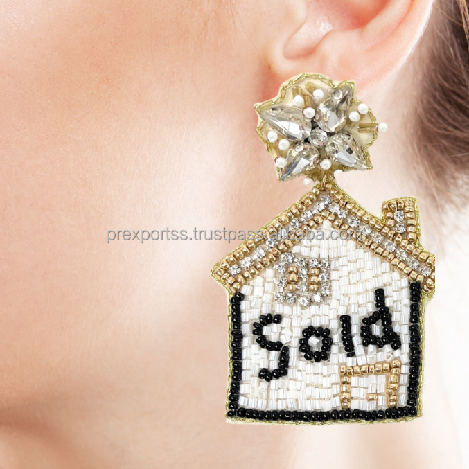 Flower Pattern Bohemian Style Drop Earrings Handmade Custom Size Seed Bead Statement Jewelry Real Estate Agents Gift