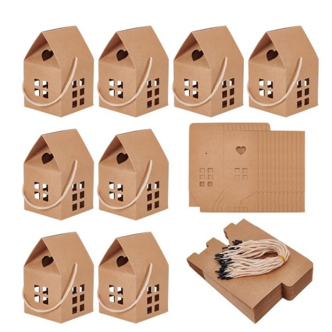 Boîtes à bonbons en forme de maison, boîtes cadeaux en papier kraft, sacs à friandises en carton pour mariage, baby shower, fête d'anniversaire
