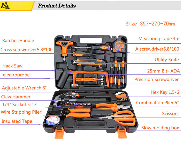 Household 46PC OEM Carbon Steel Combo Tools Multipurpose Hardware Toolbox Electrician Carpentry Repair Hand Tools Set KHC Brand
