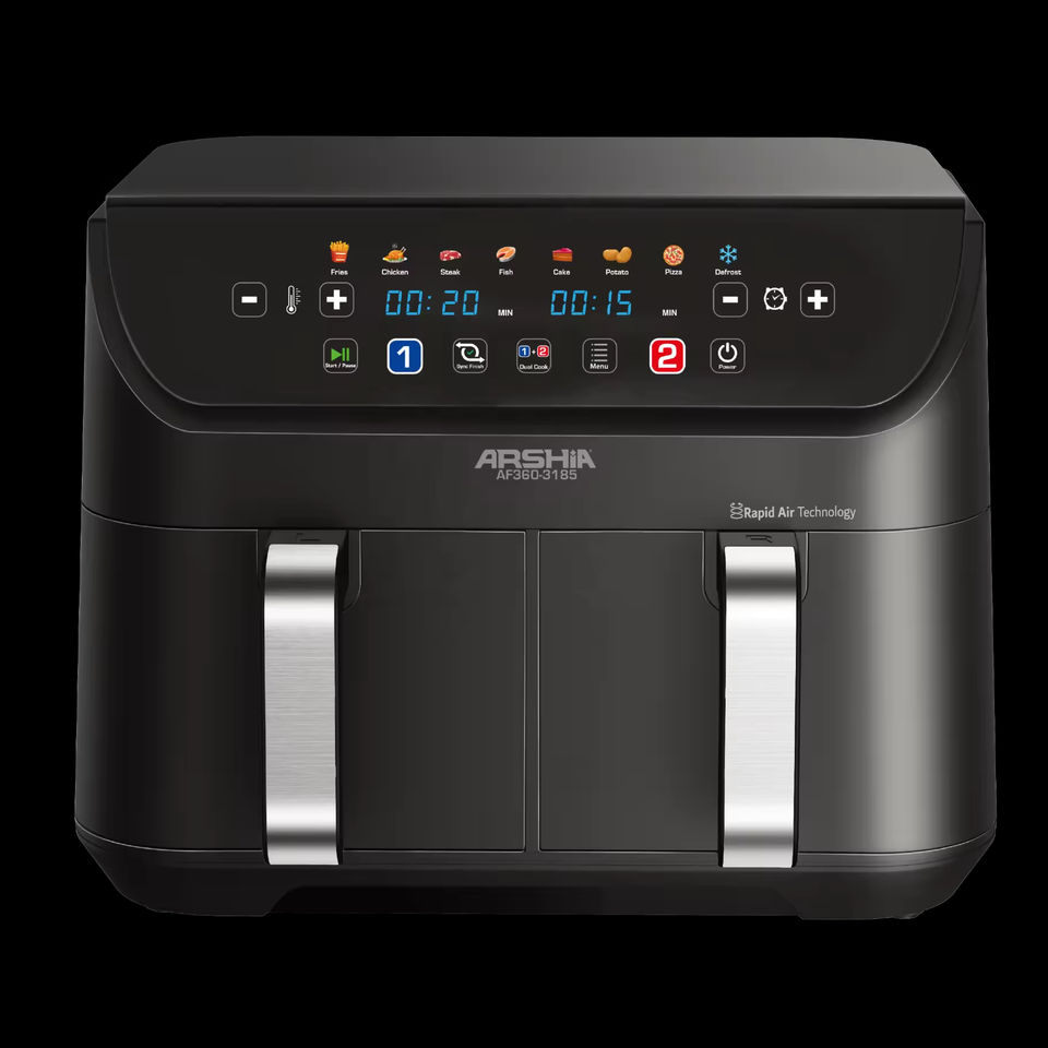 Friteuse à air double 9L à écran tactile, four électrique intelligent avec 2 paniers indépendants