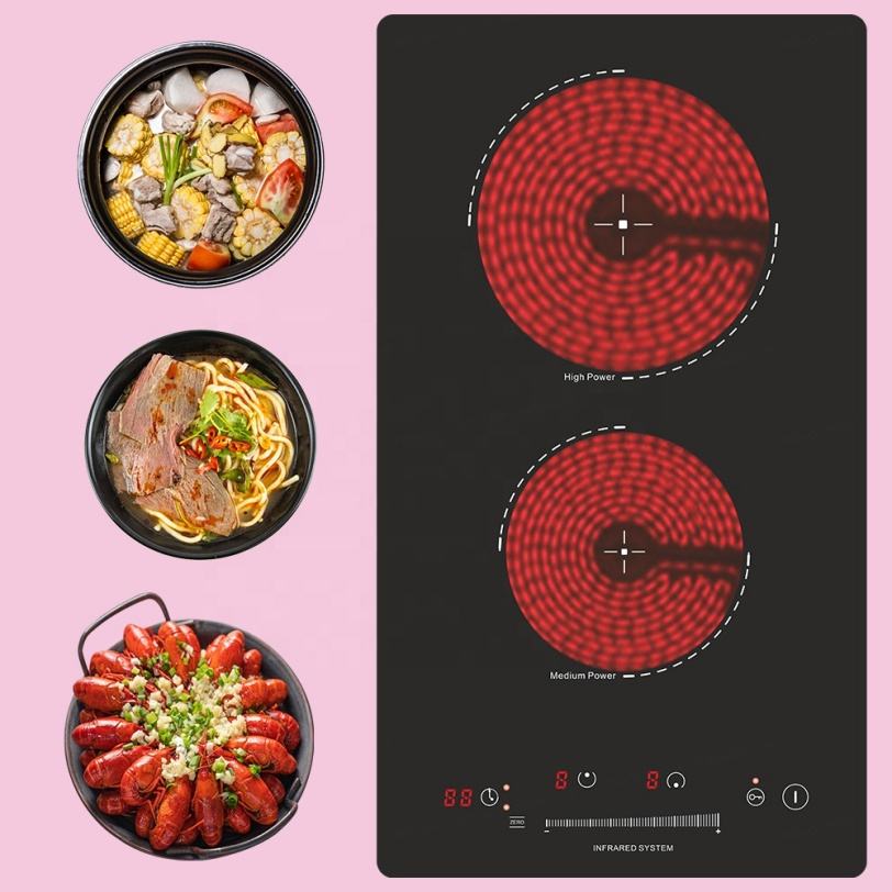 Table de cuisson électrique encastrable à infrarouge céramique 2 brûleurs avec contrôle tactile par capteur 3KW