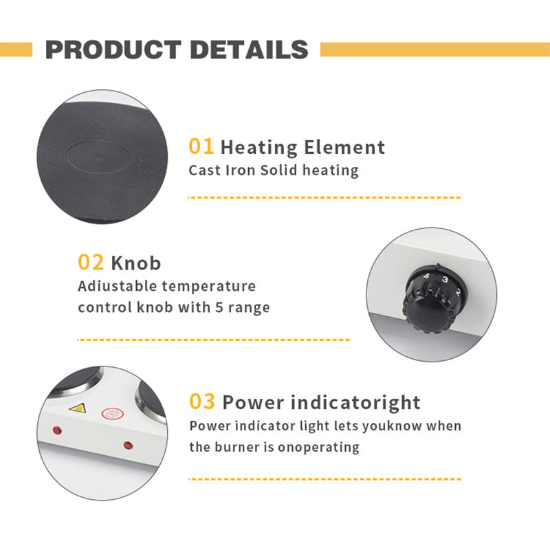 Nom du produit:Plaque de cuisson électrique en fonte 2000W, 2 brûleurs, sans gaz