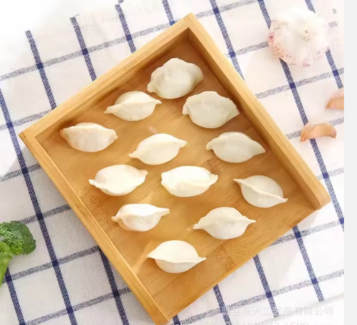 Plateau carré empilable en bambou pour la présentation des raviolis et des wontons