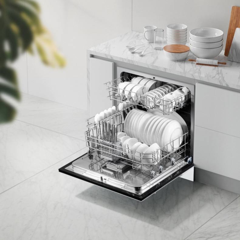 Lave-vaisselle encastrable de comptoir domestique automatique grande capacité avec séchage, désinfection et stérilisation, 12 couverts, blanc