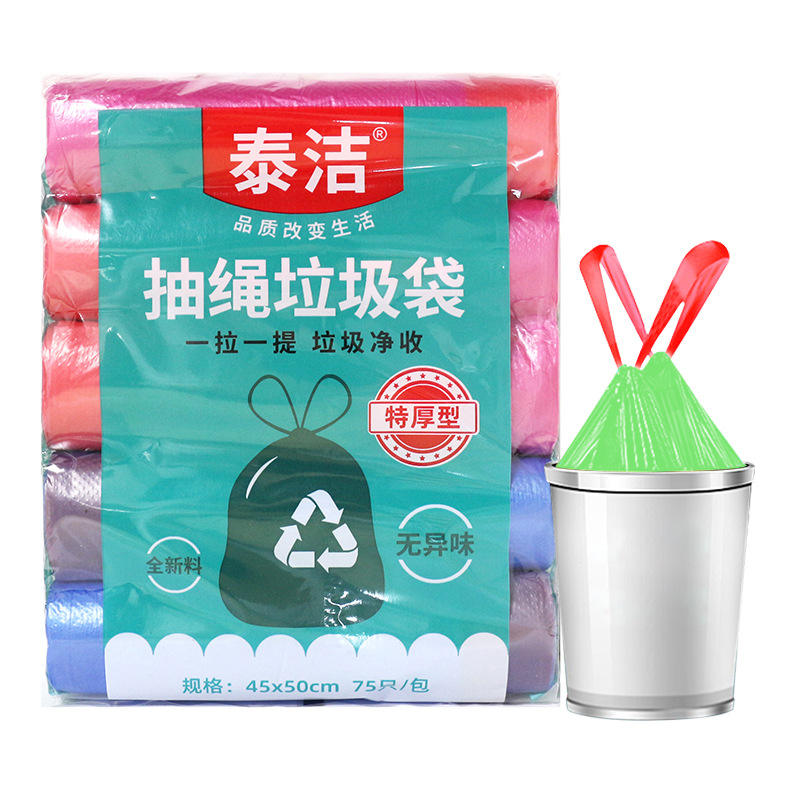Sacs poubelles en plastique épais avec cordon de serrage et poignées pour la maison et la cuisine