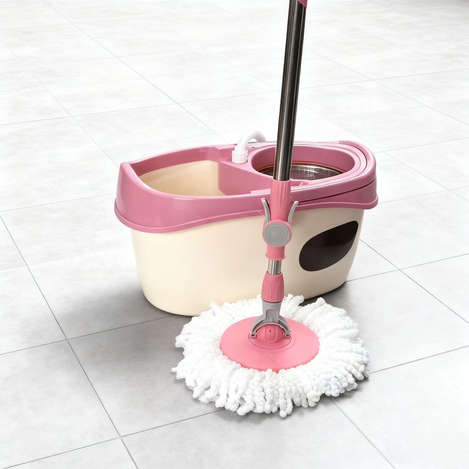 Serpillère rotative portable en plastique avec seau et essoreur, à poils doux en microfibre, durable pour le nettoyage efficace des sols
