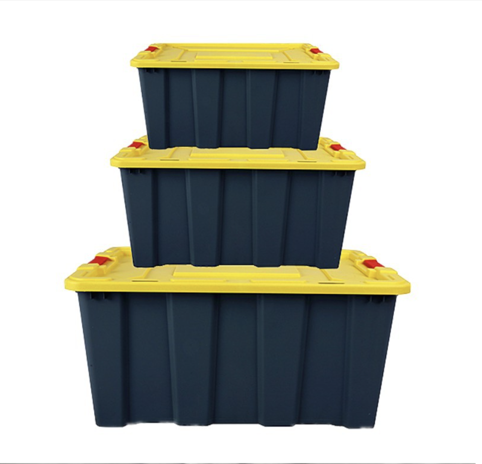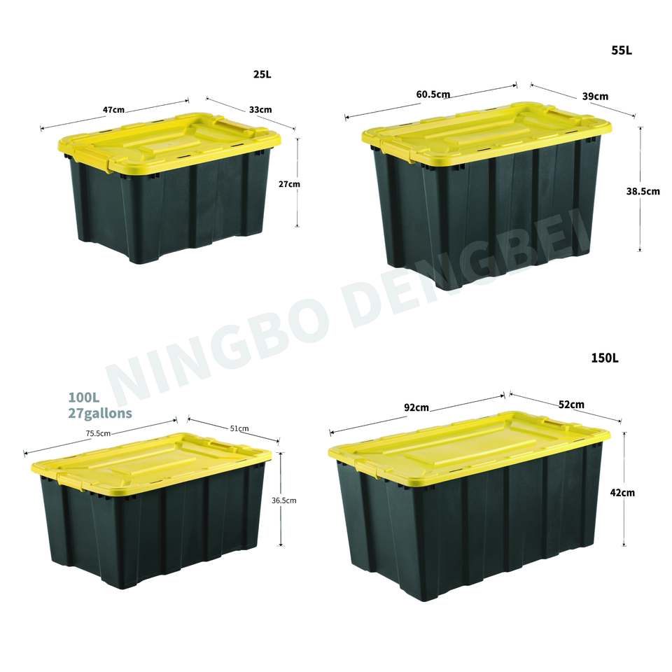 Outils de garage et de jardinage ménagers utilisent un bac de rangement en plastique de 100L avec couvercle bacs étanches multidimensionnels à usage intensif