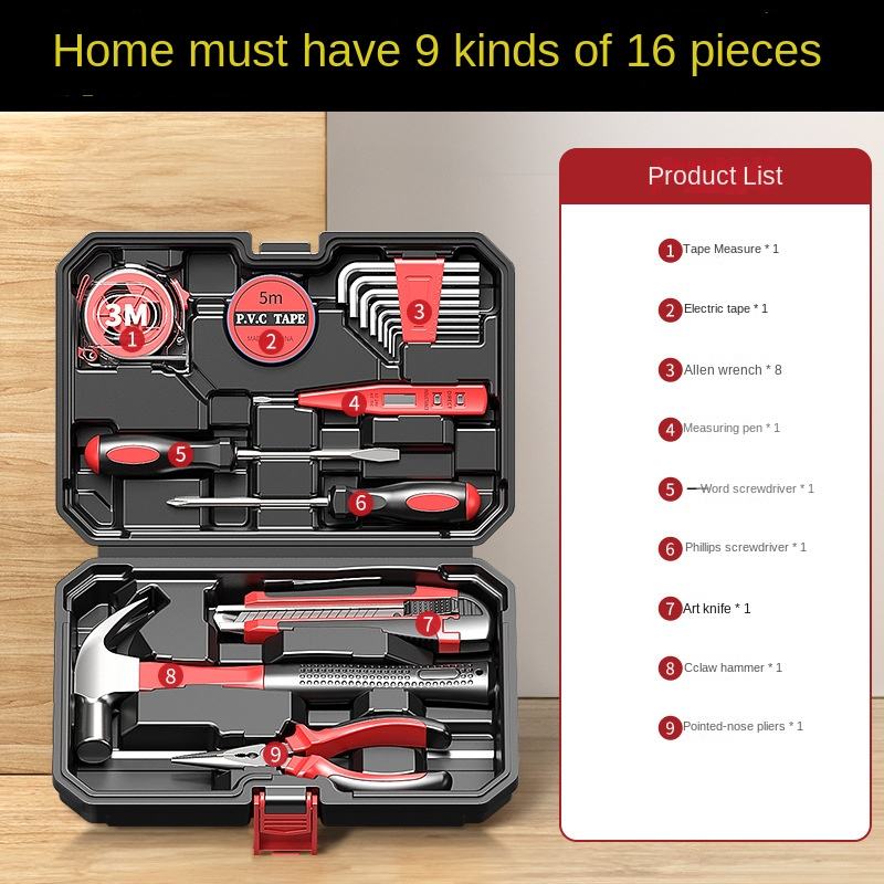 Trousse à outils de réparation pour la maison, ensemble de maintenance manuel combiné, pour électriciens et charpentiers, mallette rigide OEM