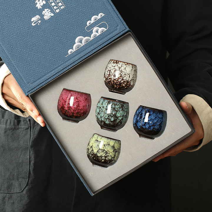 Grande tasse à café en porcelaine pour la maison avec couvercle, glaçure Tenmoku, maître des cinq éléments, tasse de 150 ml, cadeau pour les compagnons