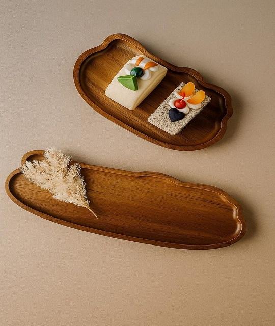 Assiette rectangulaire en bois pour la maison, plateau en bois massif pour fruits et en-cas