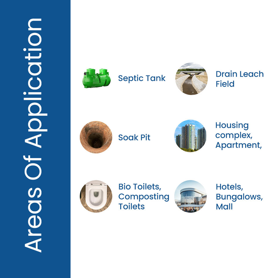 Poudre de traitement pour fosses septiques domestiques pour déchets organiques en plastique