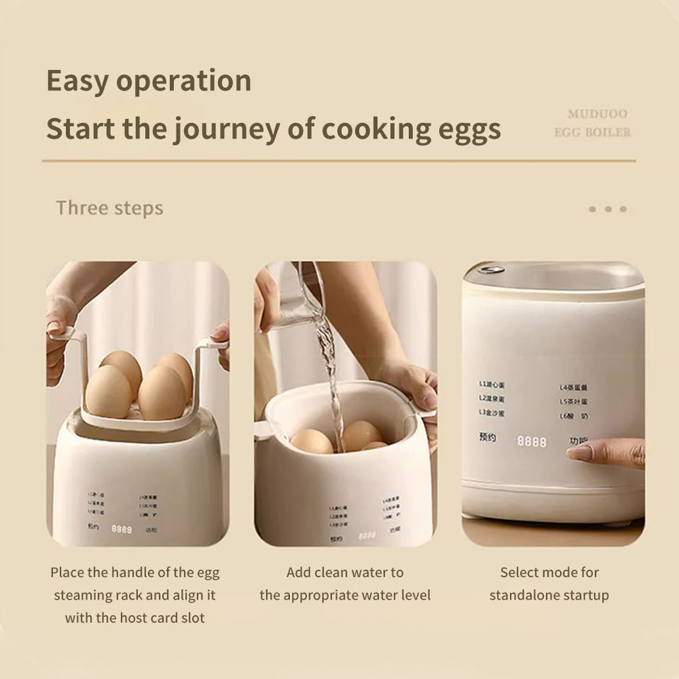 Cuiseur à œufs domestique entièrement automatique, 4-6 œufs, 300W, fonction de réservation, multifonctionnel, pour œufs à la coque et fondues