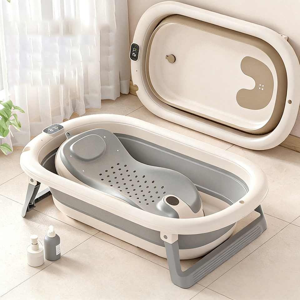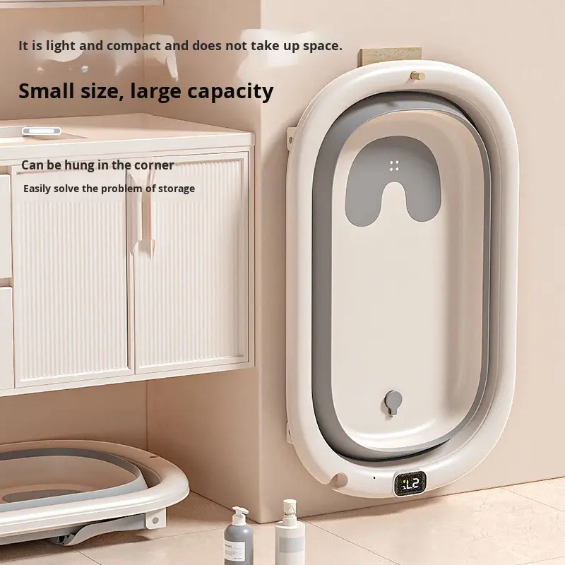 Baignoire pliable pour bébé en plastique intelligent pour la maison, à température constante, grande capacité, avec design inclinable pour s'asseoir, se coucher et se baigner