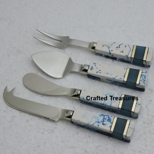 Ustensiles ménagers Ensemble de fromage en acier inoxydable avec manche en bois et en résine Couteau à beurre Ensemble de coupe-fromage polyvalent