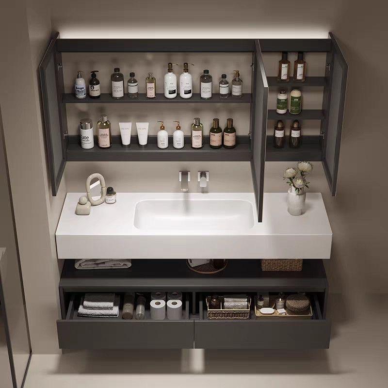 Meuble de salle de bain intelligent à double couche avec miroir et rangement, gain de place, en panneaux de roche