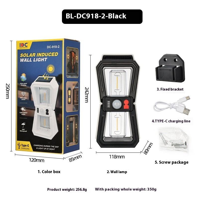 Lampe murale extérieure solaire étanche avec capteur de mouvement LED, modes multiples, indice de protection IP65 pour l'éclairage des jardins et des villas