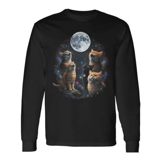 T-shirt à manches longues pour amoureux des animaux, chats hurlants, lune pleine, ciel étoilé, galaxie, animal du cosmos