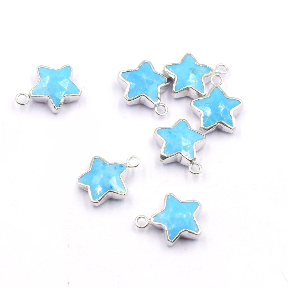 Pendentif plaqué argent à facettes Howlite 14-16mm avec forme d'étoile en forme de caution en laiton