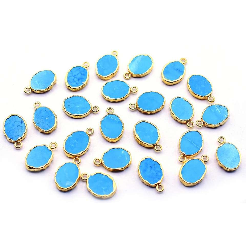 Pendentif ovale en laiton plaqué or de 16 à 18 mm en howlite avec bélière pour la fabrication de bijoux