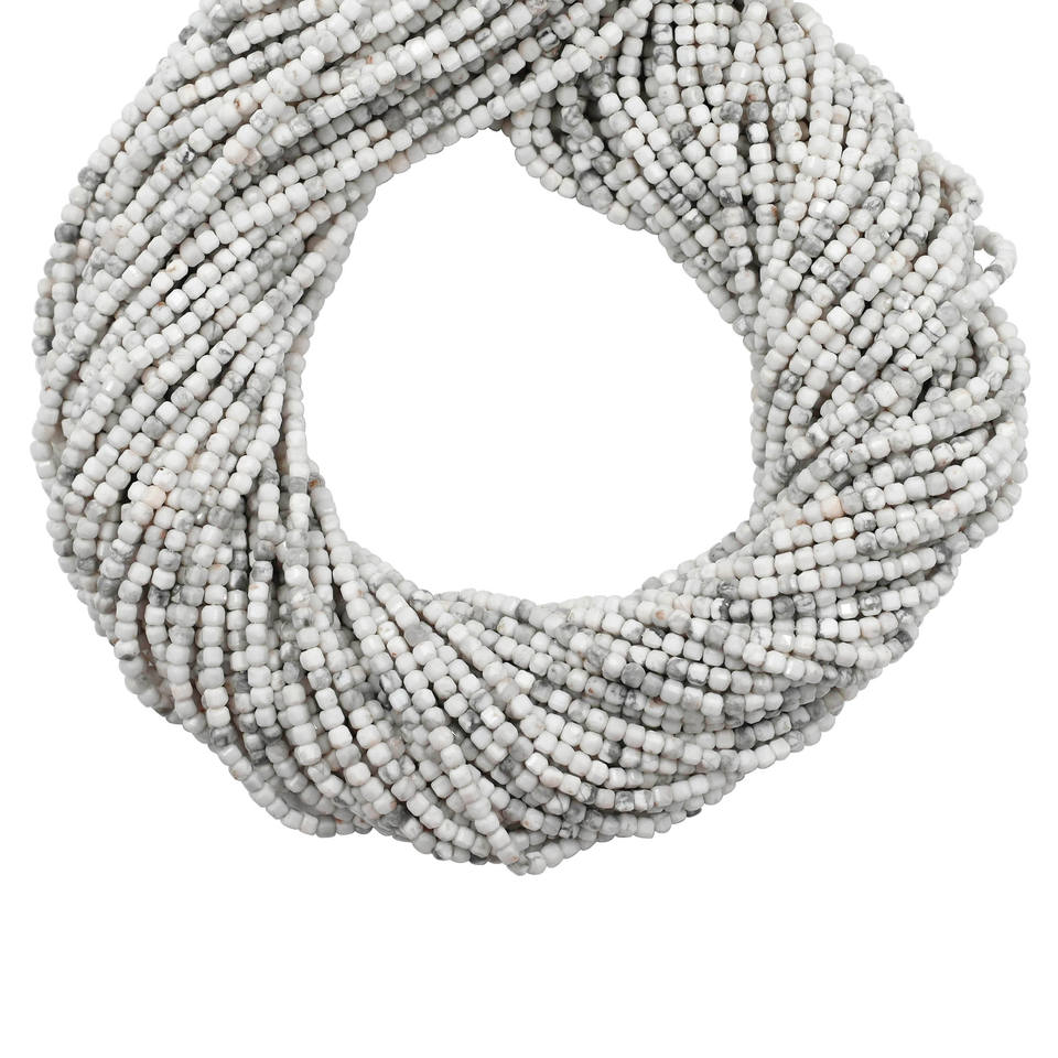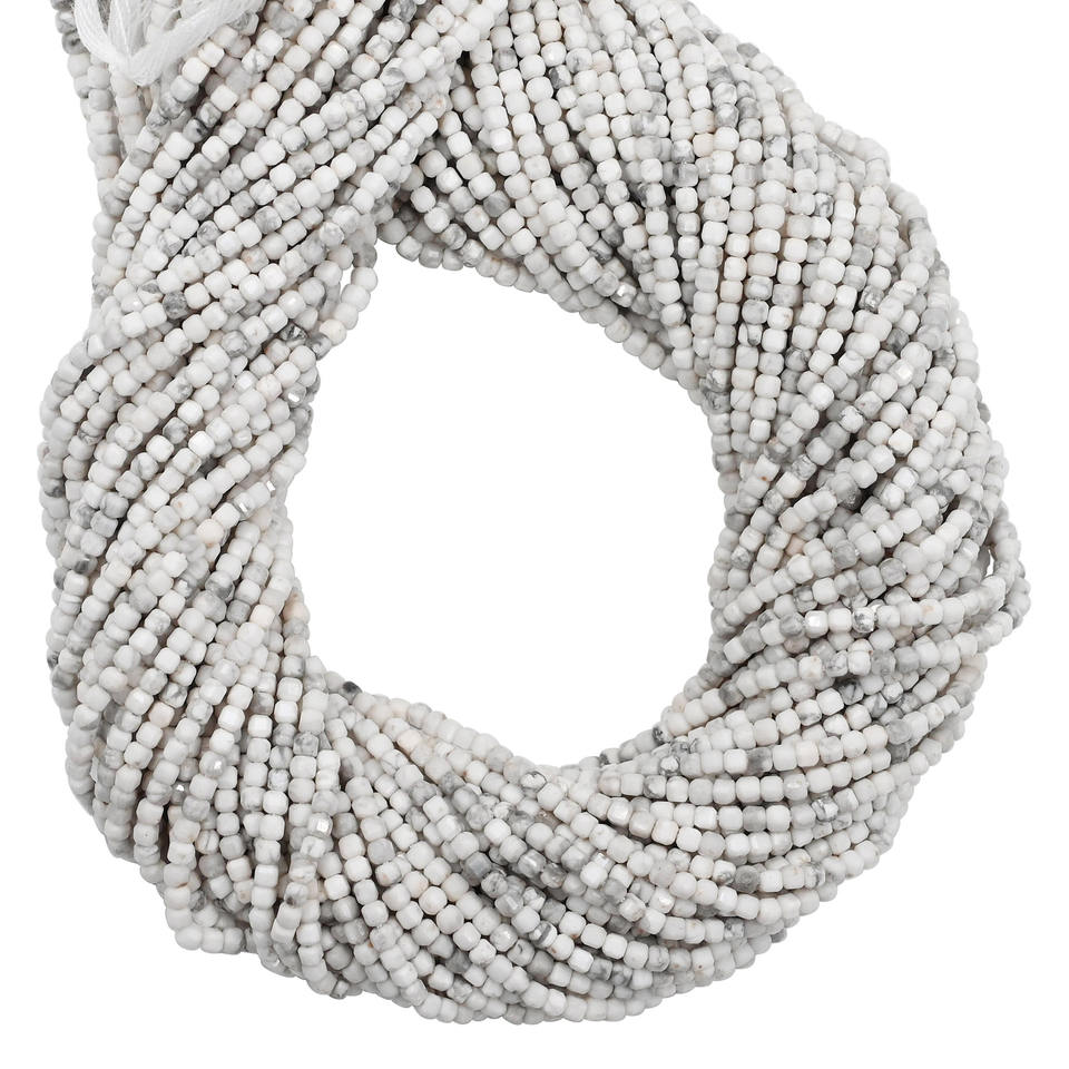 Nom du produit:Fil de perles de howlite facettées, forme cubique, 2 à 2,5 mm