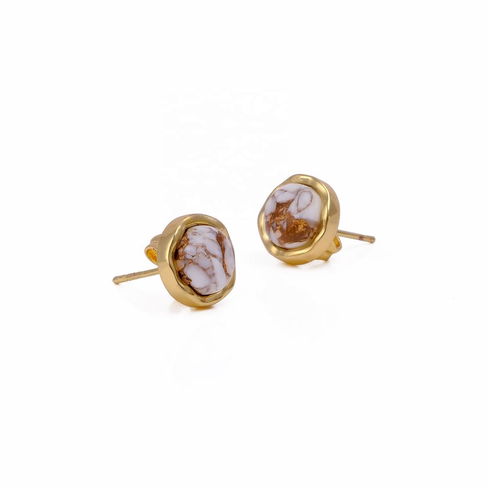 Howlite Mojave Turquoise ronde à la main pierres précieuses plaqué or laiton boucles d'oreilles Boho Chic gros mode goujons