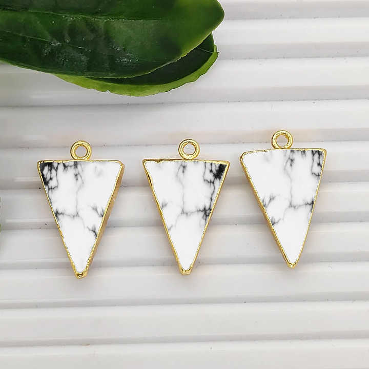 Pendentif triangulaire en howlite électroplaqué, howlite naturelle 20x15mm, plaqué or, fait main, connecteur pour la fabrication de bijoux