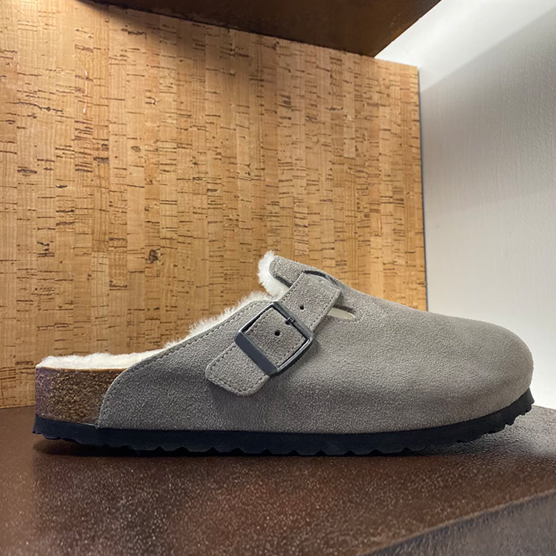 Sabots à semelle épaisse Htf, plats, chauds, antidérapants, en daim, en liège, doux, respirants, légers, à bout fermé, avec boucle, pantoufles pour femmes, automne, EVA