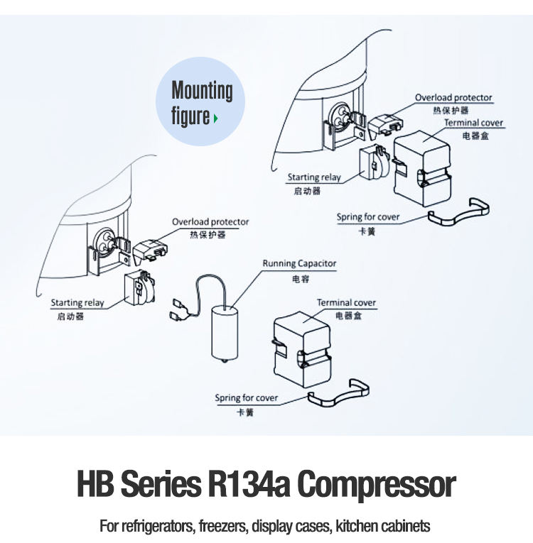Compresseur de réfrigérateur Hua Jun Manufacture R134a 175W, mini compresseur de congélateur