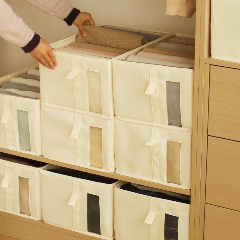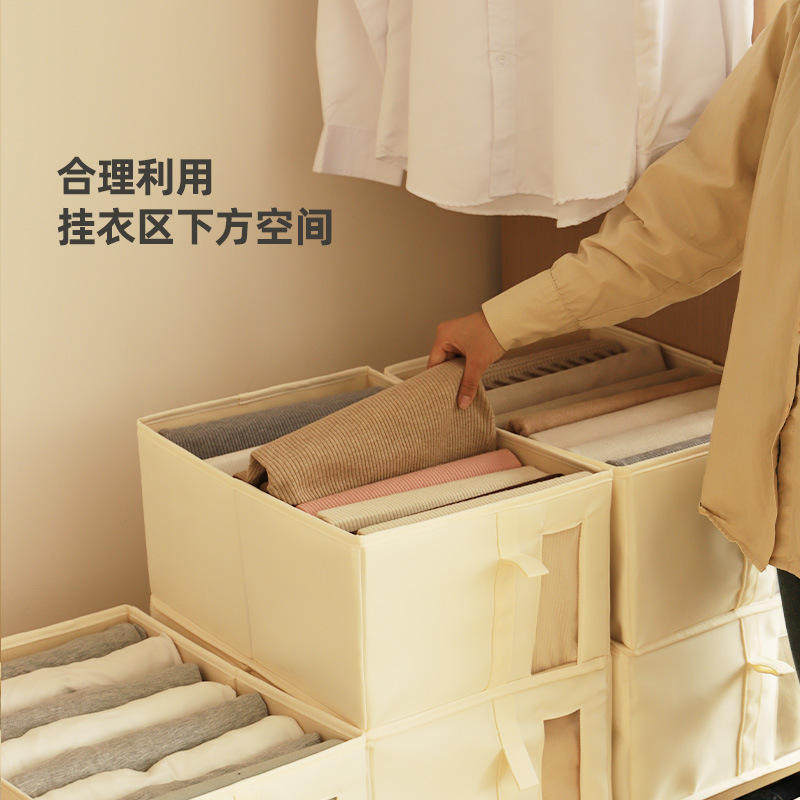 Boîte de rangement pour vêtements Huada, rectangulaire, beige rose, pliable, grande capacité, empilable, organisateur pour armoire