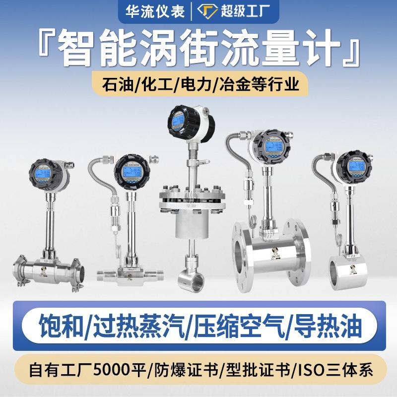 Hualiu Vortex Flow Meter Stainless Steel Flange Clamp 12-24VDC Gas Liquid Steam High Precision Digital Display