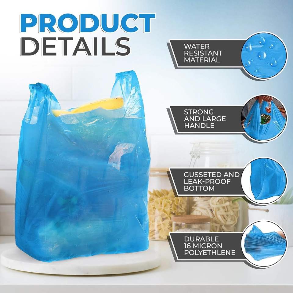 Sacs poubelle durables en LDPE Huamaohengchun, 200 unités, avec poignées (11x17x21 pouces) | Sacs de transport robustes de type gilet pour