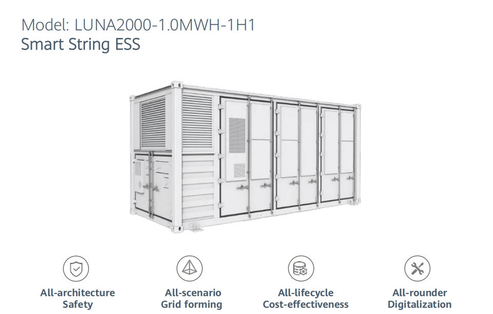 Solution ESS solaire intelligente Huawei LUNA2000 - Série 2.0MWH à refroidissement par air, système de stockage d'énergie en conteneur 700KWH 800KWH 1MWH