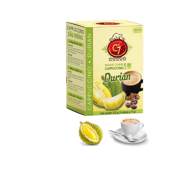 Hucafood 4-en-1 Crème de fruits instantanée Poudre de chocolat Haute qualité Premium Durian Café Crémier Cappuccino Boîte Sweet Mellow