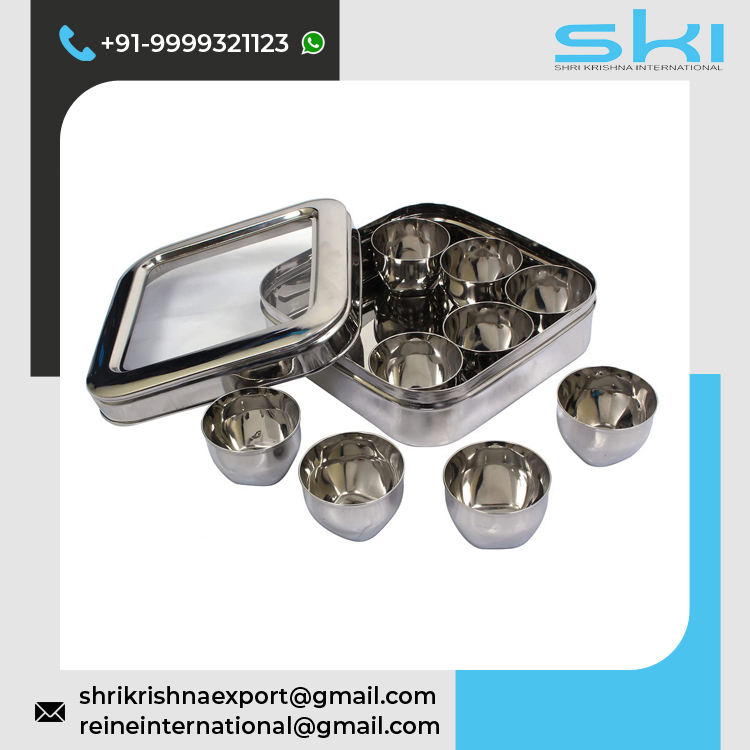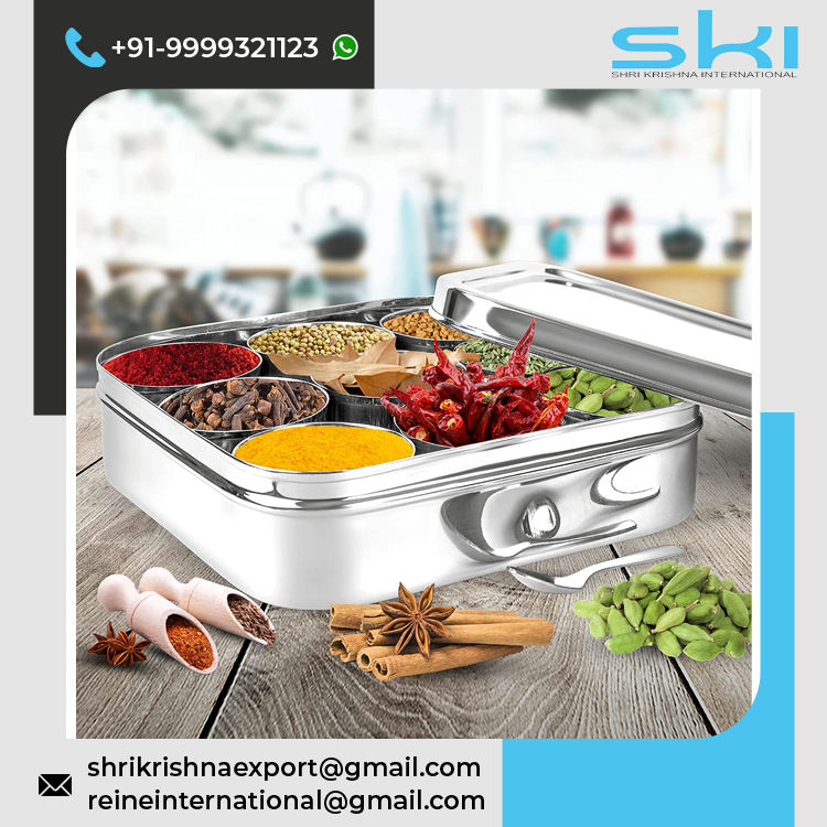Énorme vente meilleure qualité forme carrée en acier inoxydable boîte à épices écologique Durable authentique indien Masala Dabba
