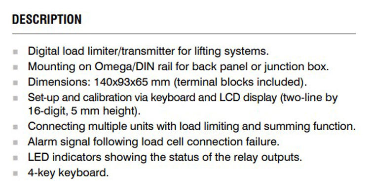 Limiteur de charge numérique LCD3 vente énorme-transmetteur de poids pour systèmes de levage du fabricant d'origine italienne le plus répertorié