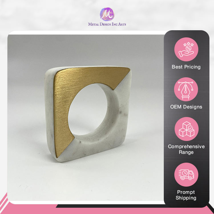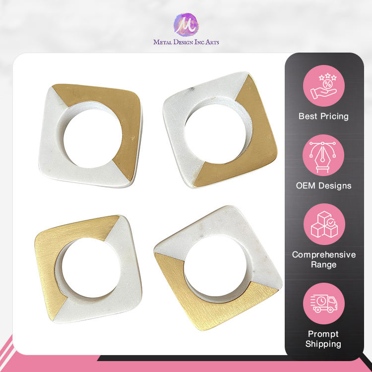 Énorme dans la vente personnalisable forme carrée marbre & Blass fait serviette anneaux ensemble de 4 pour les acheteurs en vrac authentiques de l'Inde