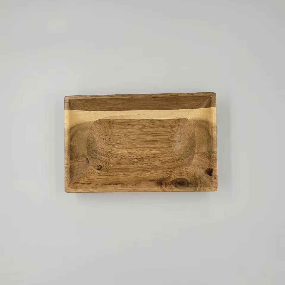 Plateau rectangulaire en bois d'acacia Huhipro modèle 01, écologique, antidérapant, couleur naturelle, léger, plateau de service portable pour l'intérieur