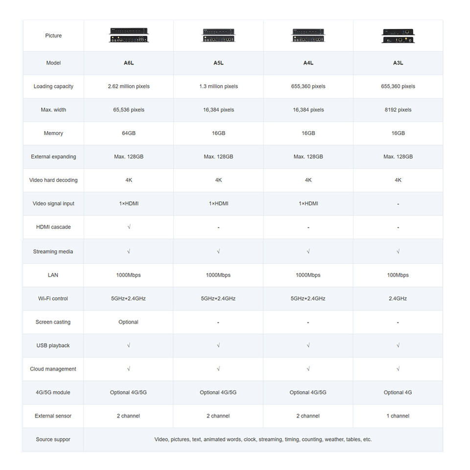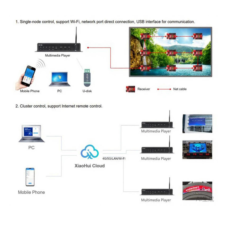 Système Huidu lecteur multimédia double mode A3L/A4L/A5L/A6L avec application mobile contrôleur d'affichage LED sans fil/USB/4G
