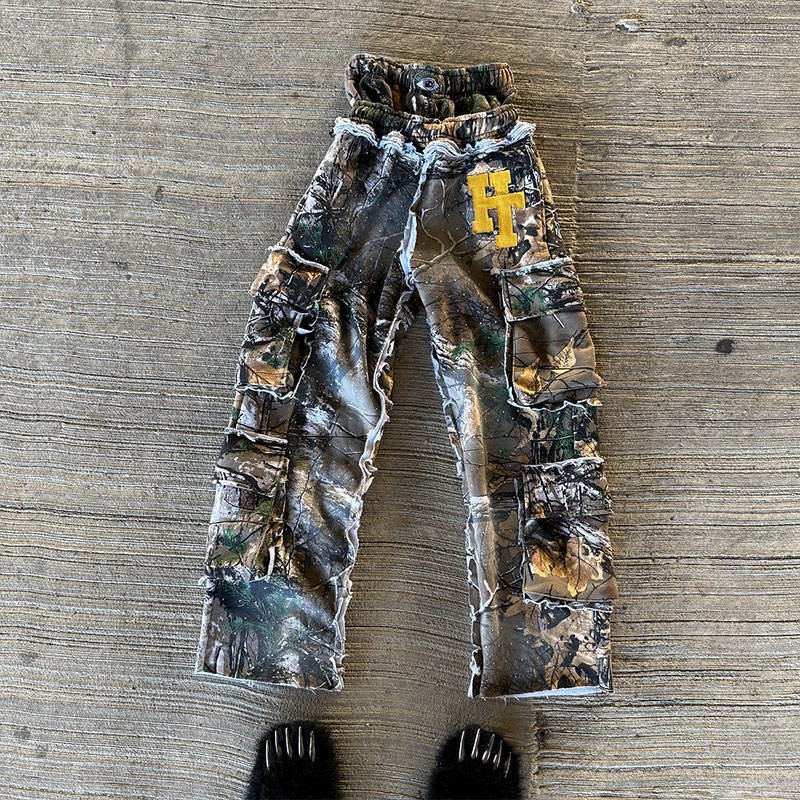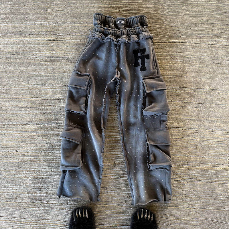 Huili One Stop logo de broderie personnalisé patché pantalons de survêtement hommes en détresse lavé strass Double taille pantalons de survêtement