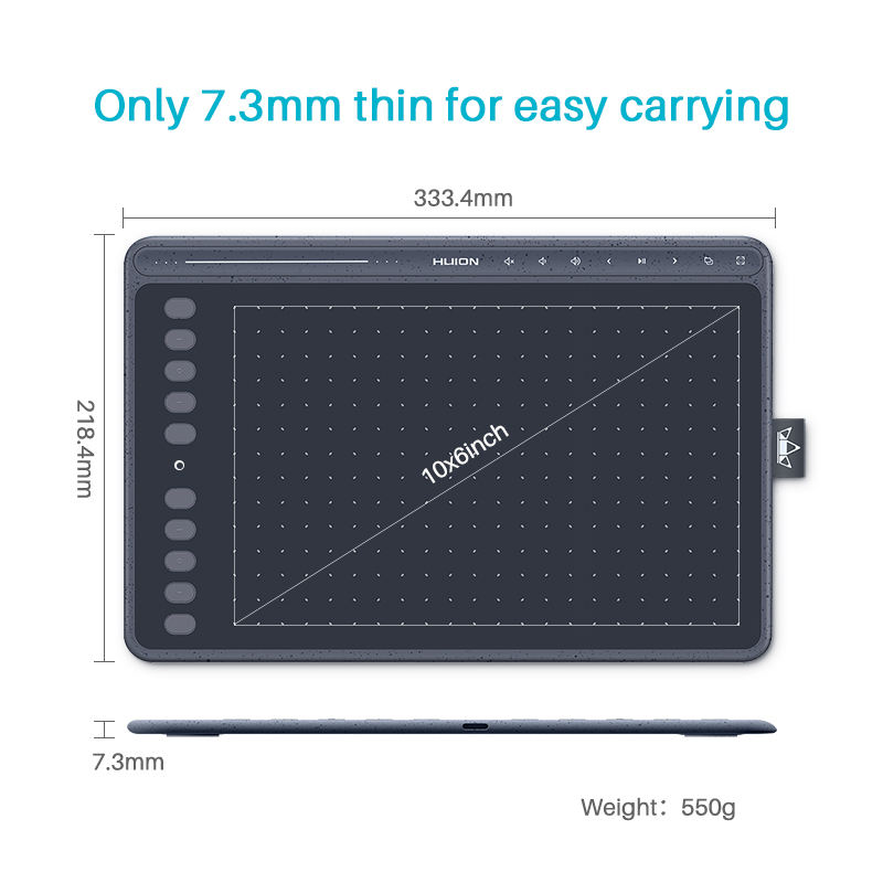 Tablette graphique Huion 10,6 pouces grand format avec fonction d'inclinaison, touches multimédias, pour artistes, designers, accessoires PC HS611
