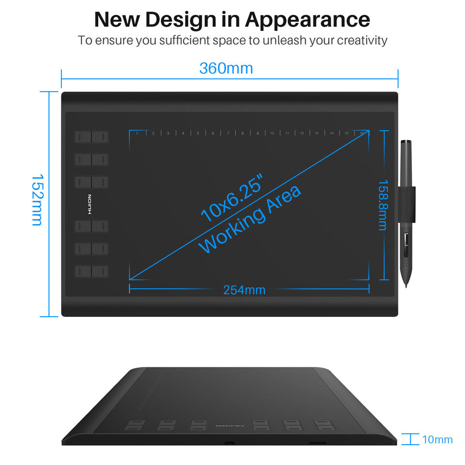 Zone de travail:254*158.8mm (10*6.25 pouces)