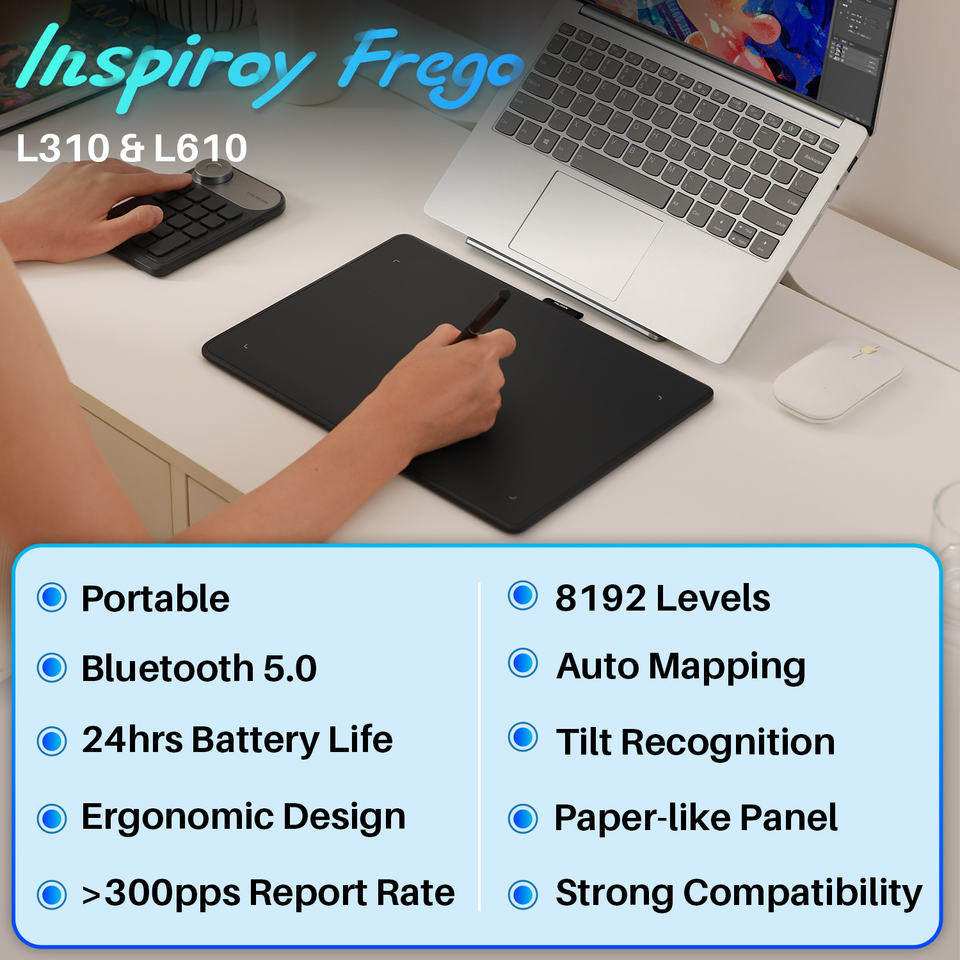 Huion Portable Sans Fil Tableta Grafica pour Designer Sans Batterie Stylo Dessin Tablette Inspiroy Série L310