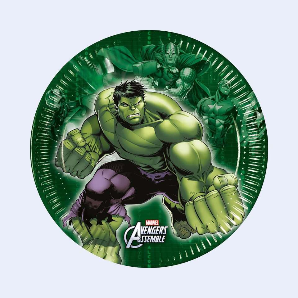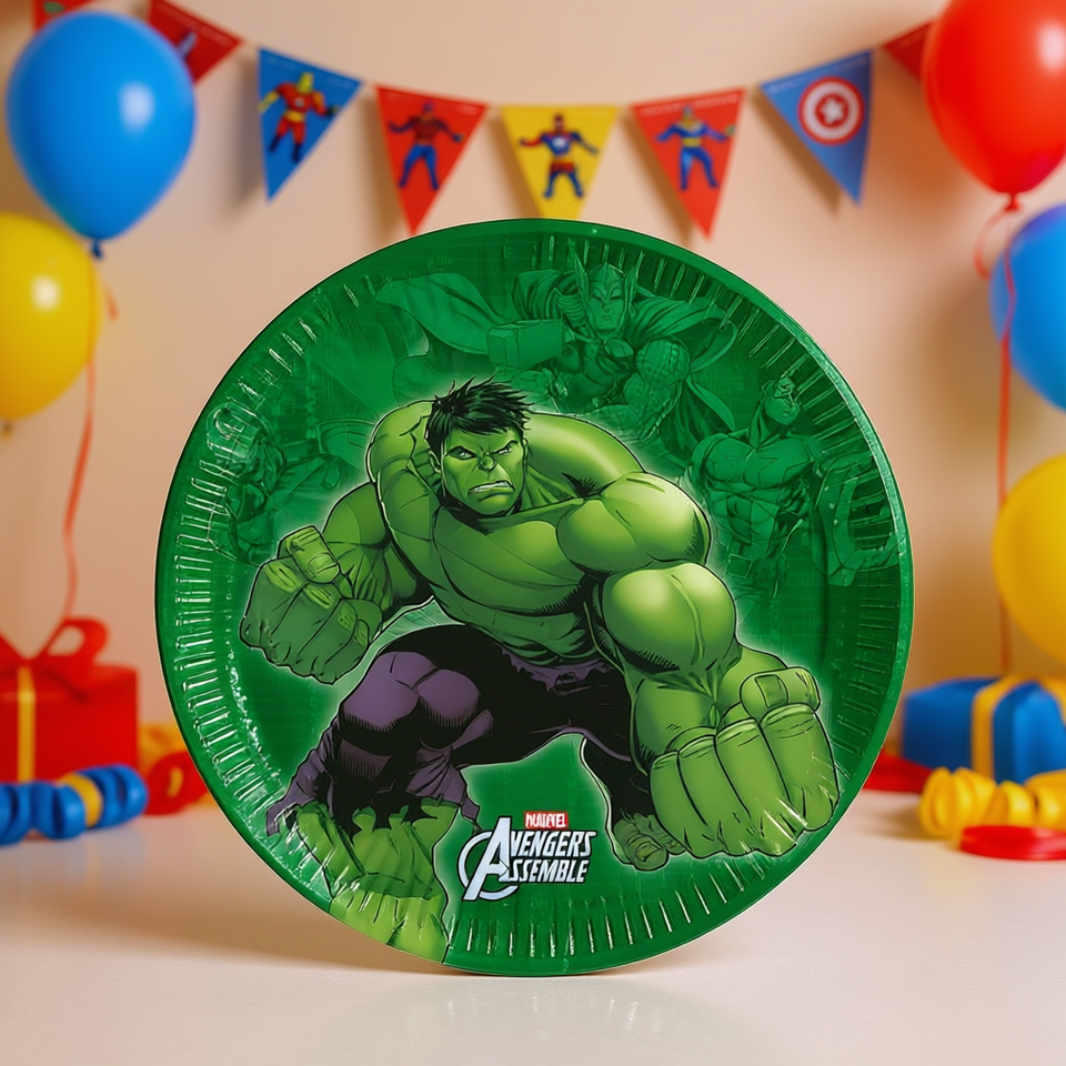 Assiettes jetables Hulk 19,5 cm 8 pièces Fournitures de fête Thème Avengers Assemble