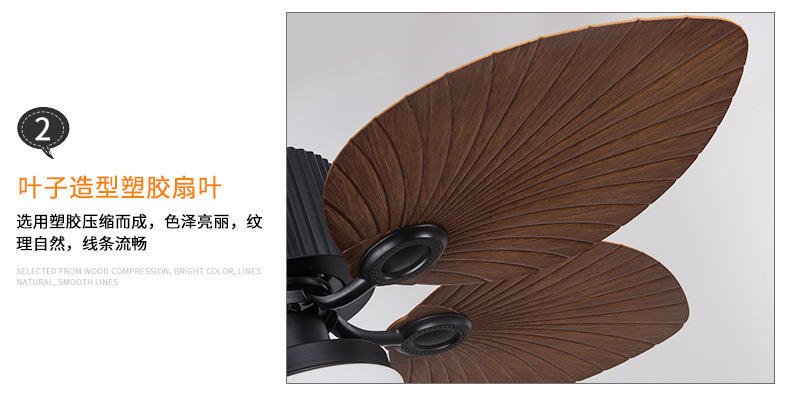 Ventilateur de plafond Human Centric Lighting 52 pouces, style tropical décoratif, avec moteur DC