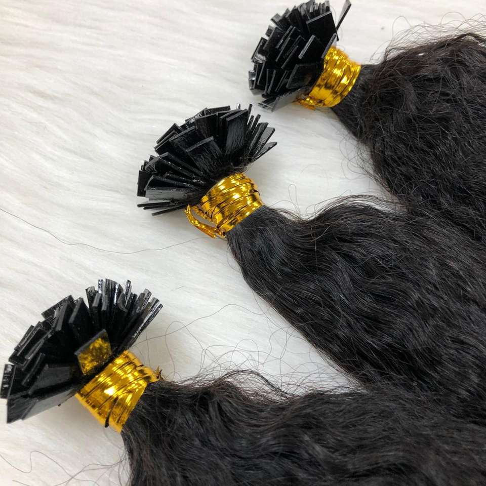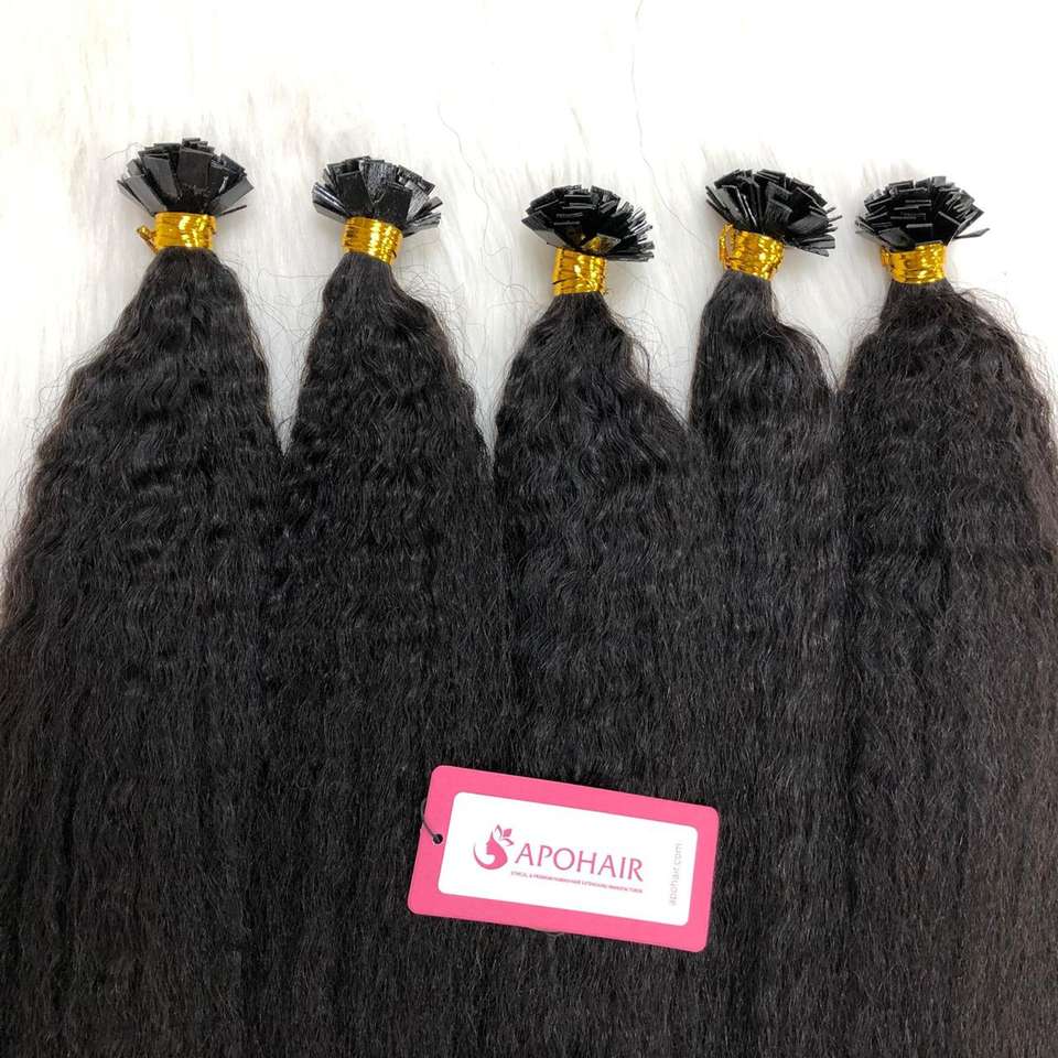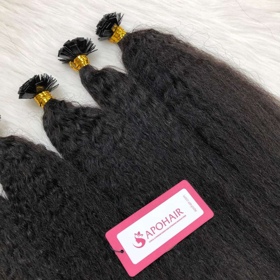 Cheveux humains kératine pointes plates Extensions de cheveux crépus droite meilleure vente Texture couleur naturelle