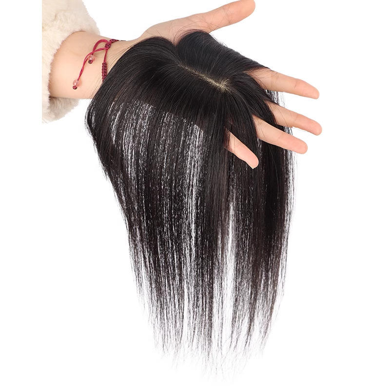 Patch de remplacement capillaire en cheveux naturels, 25 cm, lisse, couleur naturelle, léger et respirant pour femmes