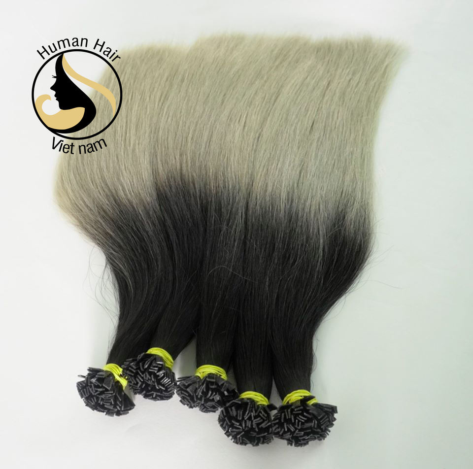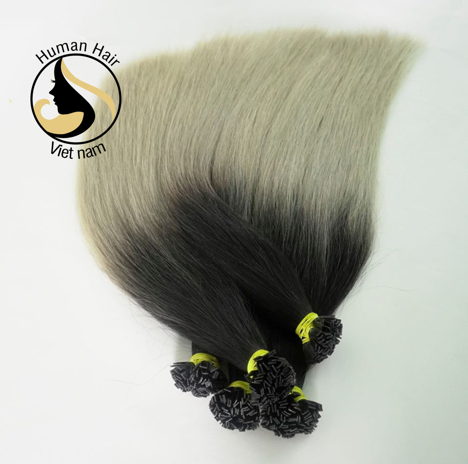 Cheveux naturels péruviens deux tons — ali queen, extensions de cheveux à double pointe plate, couleur noir/gris ombré, 1g/1 pièce