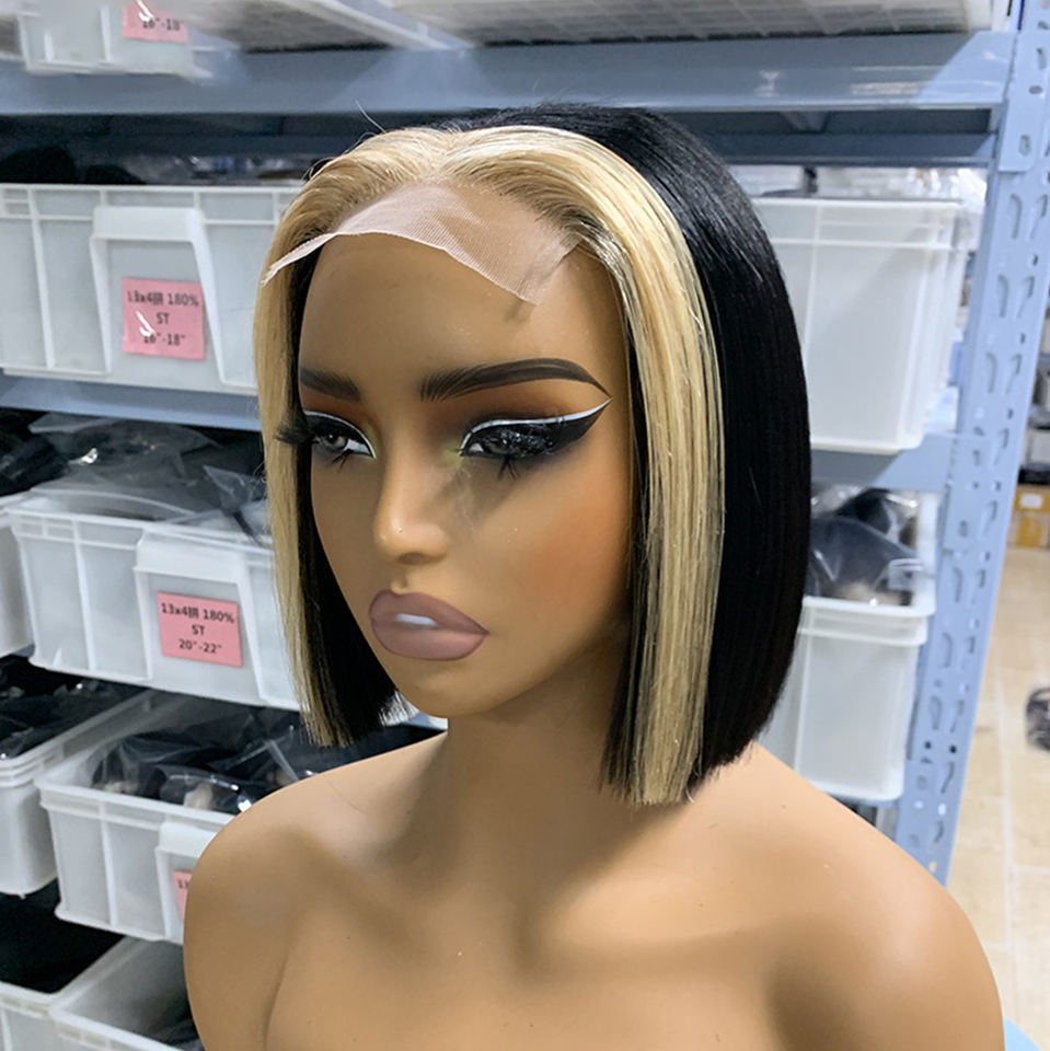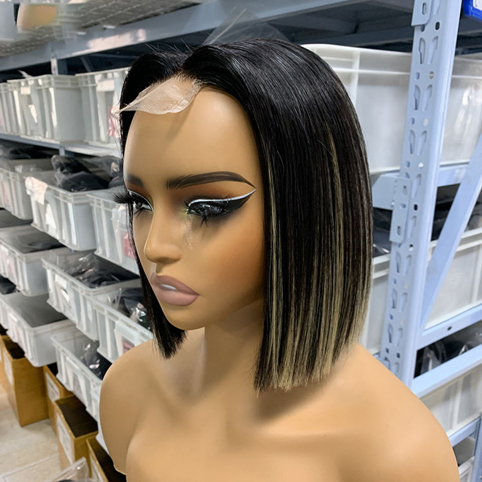 Perruques en cheveux humains, coupe bob de 8 pouces, cuticules alignées, nouées à la main, colorées pour femmes