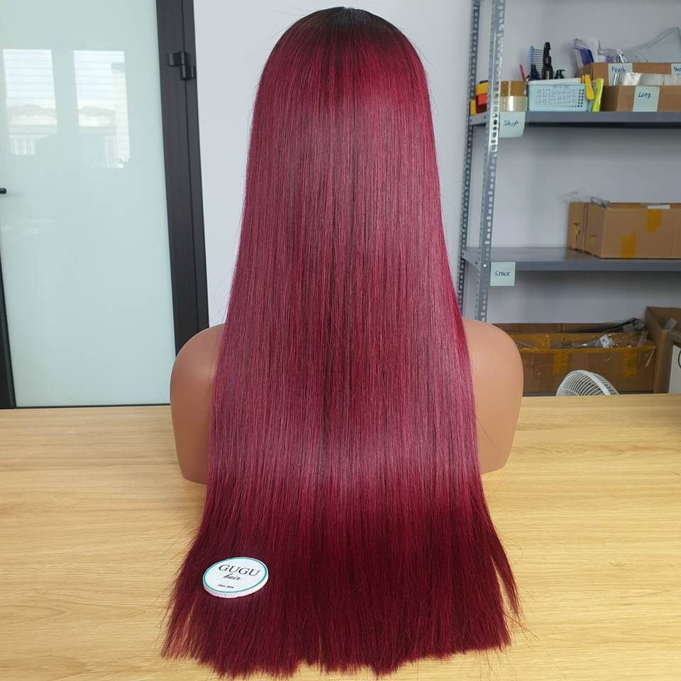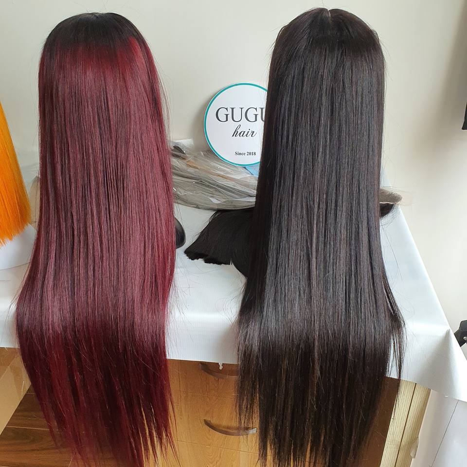 Perruques de cheveux humains Double Drawn 100% Fournisseur de cheveux vietnamiens bruts, Extensions de cheveux humains vierges lisses de couleur bordeaux
