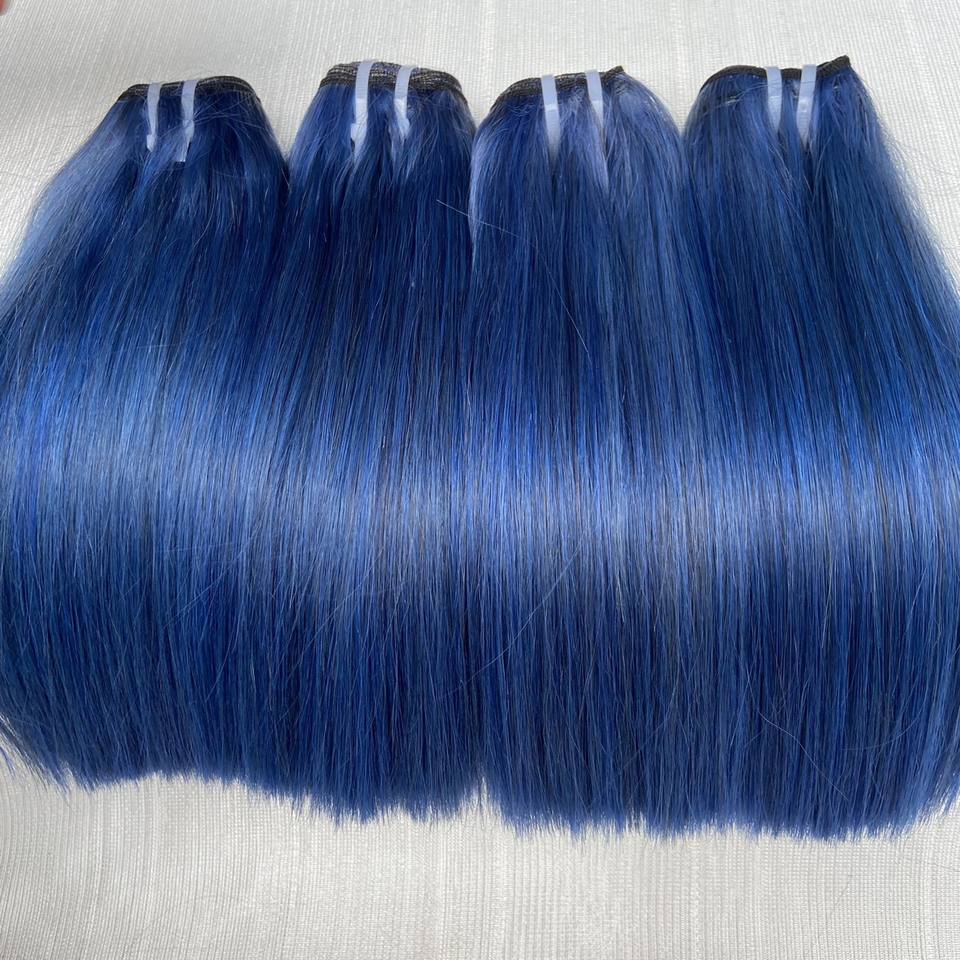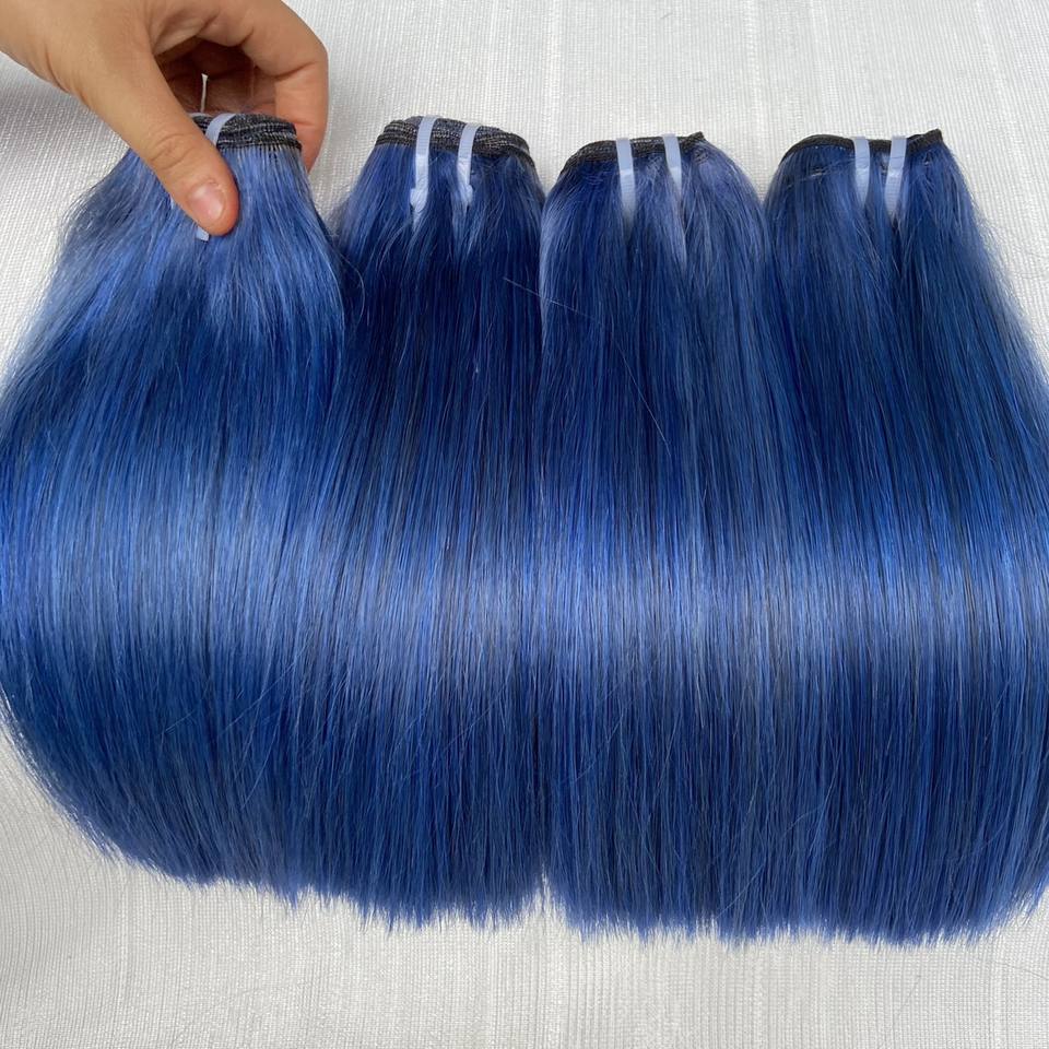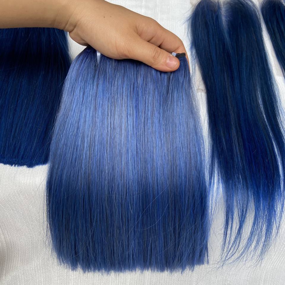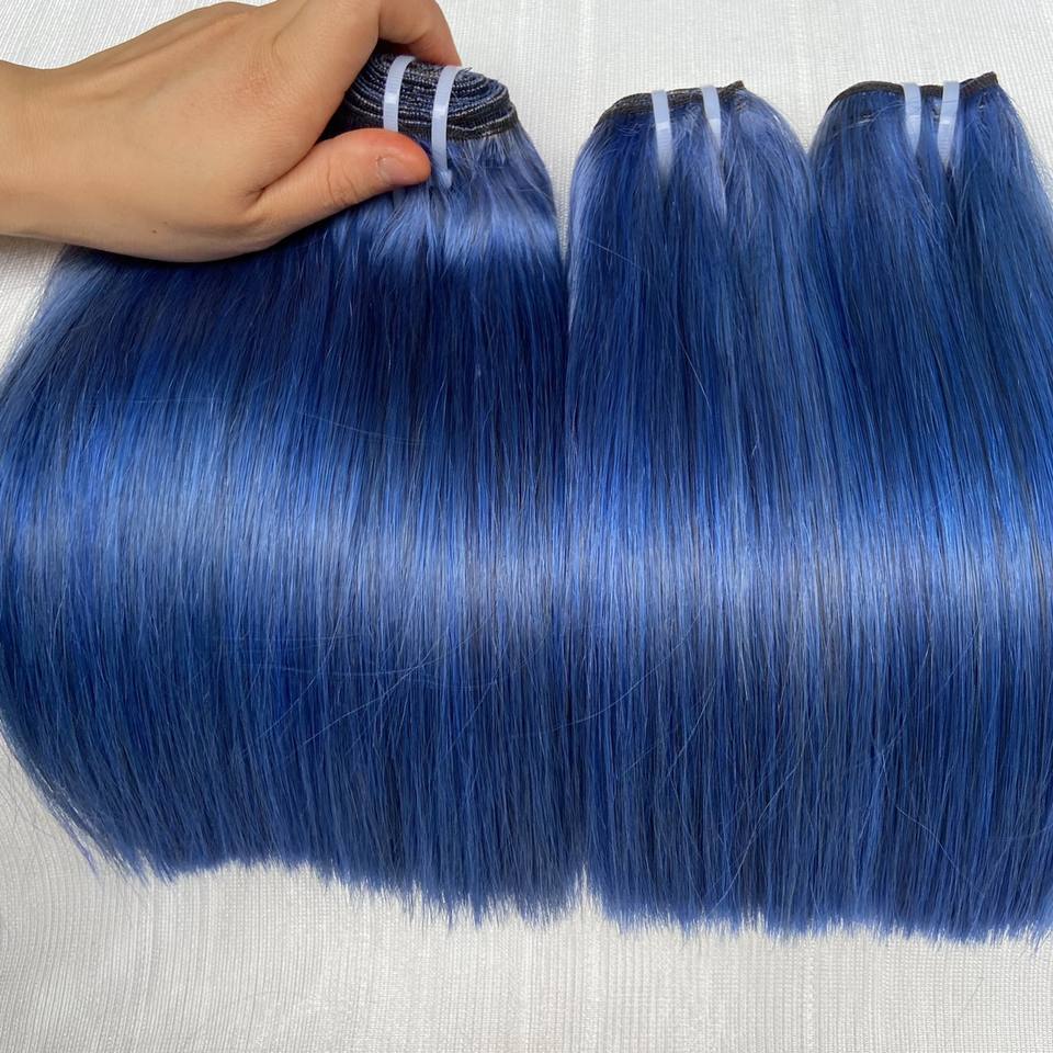 Extensions de cheveux naturels vierges vietnamiens Remy double épaisseur, couleur bleue, lisses comme des baguettes, qualité supérieure, fournisseur fiable